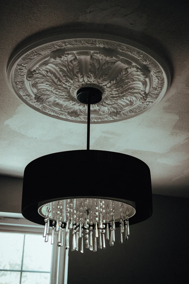 This week our ceiling medallion came in. We ordered it from Lowes, and I'm really loving it. After three years of staring at popcorn, I decided our ceiling needed some TLC.