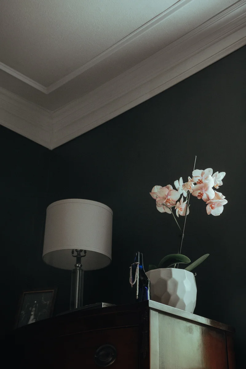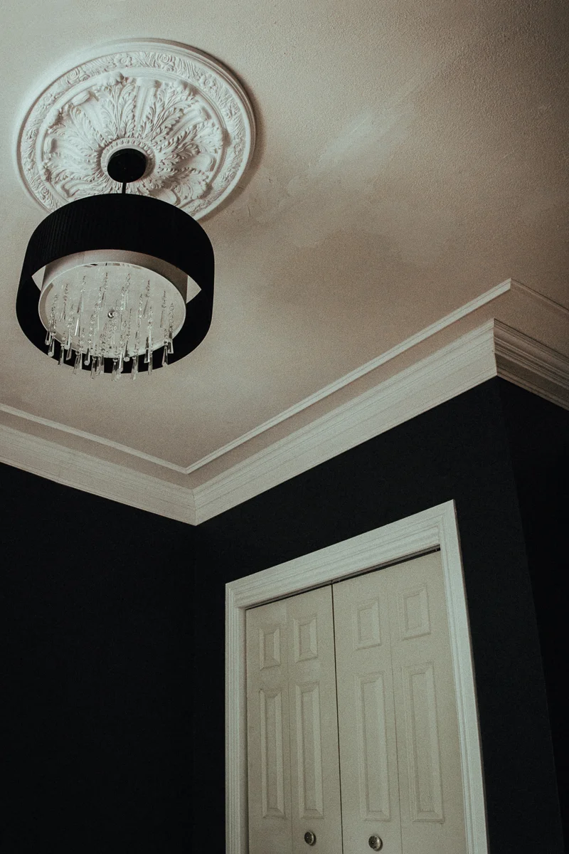 We still have to paint the ceiling, and the crown. I'm still on the fence about what I'm going to do. We also have to paint the closet doors. There I know exactly what I'm doing. The doors are going to be a hi-gloss (almost lacquered) black, and eventually all the doors in the house will be. I. Cannot. Wait.