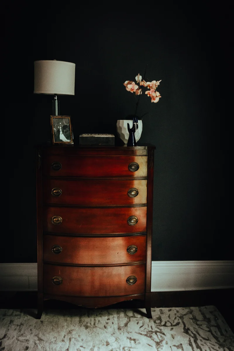 We also sold our old dresser, and picked up a new (to us) antique dresser, that I love. I was sad to let go of our old dresser, but I've been wanting a sitting area in our room, and the longer dresser was taking up too much real estate to make that viable. The dresser was almost exactly what I was looking for. I would have preferred a burled walnut, but I didn't feel like spending five grand on a dresser, so this was a great compromise, and just the shape I was after.